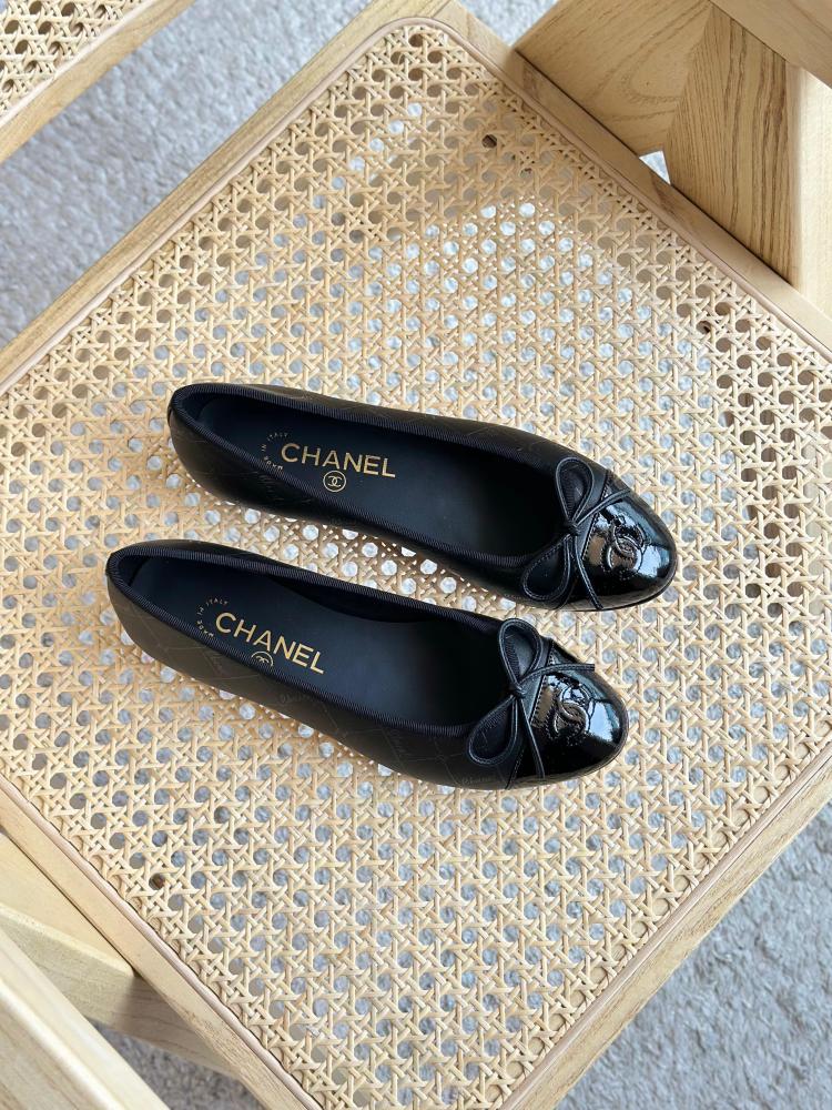 ارتقي بإطلالتك مع باليرينا شانيل ماستر كوالتي باللون الأسود الكلاسيكي، بتصميم أنثوي راقٍ يجمع بين الجلد الناعم والمقدمة اللامعة المزدانة بشعار Chanel الأيقوني. الربطة الأمامية تضيف لمسة من الرقة، فيما يوفر التصميم المريح ارتداءً سلسًا طوال اليوم. خيار مثالي للمناسبات الكاجوال الأنيقة أو الإطلالات اليومية الراقية. تأتي بالملحقات الكاملة لتعكس الفخامة الفرنسية وتكمل أناقتك بأسلوب راقٍ لا يُضاهى